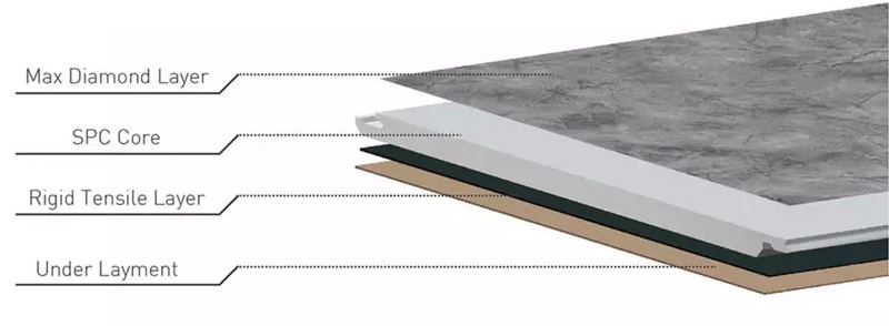 安定性:SPCコアが安定性を提供し、温度や湿度の変化による床材の大幅な伸縮を防ぎます。この安定性は、天然の堅木張りの床に比べて大きな利点です。